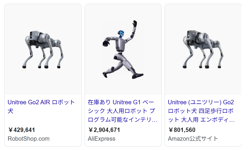 - 四足歩行ロボット「Go2 Air」…約42万円〜80万円前後